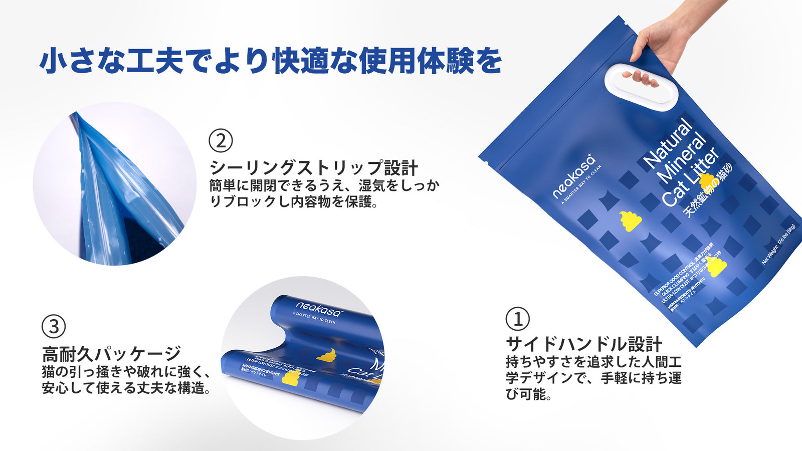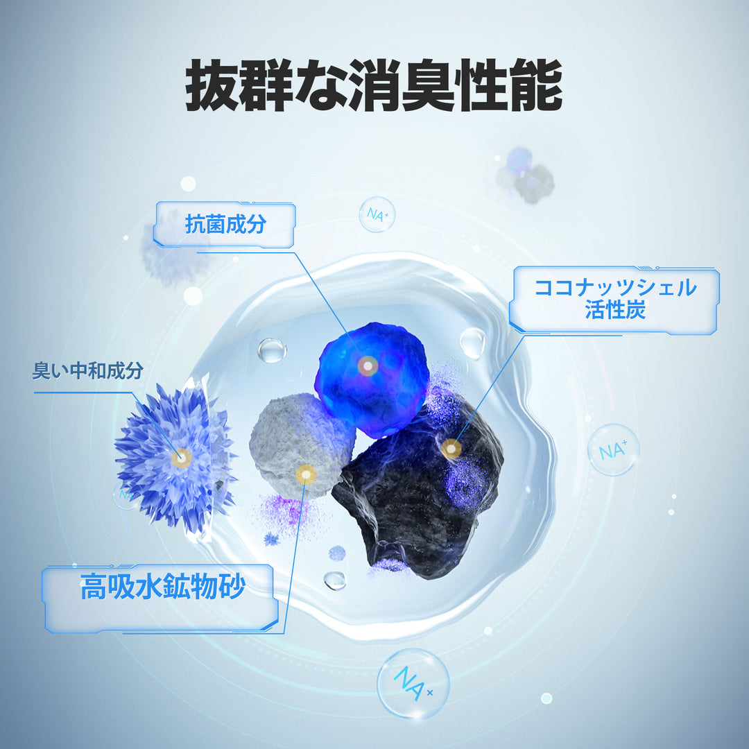 高吸水鉱物砂×活性炭×抗菌成分のトリプル効果!
